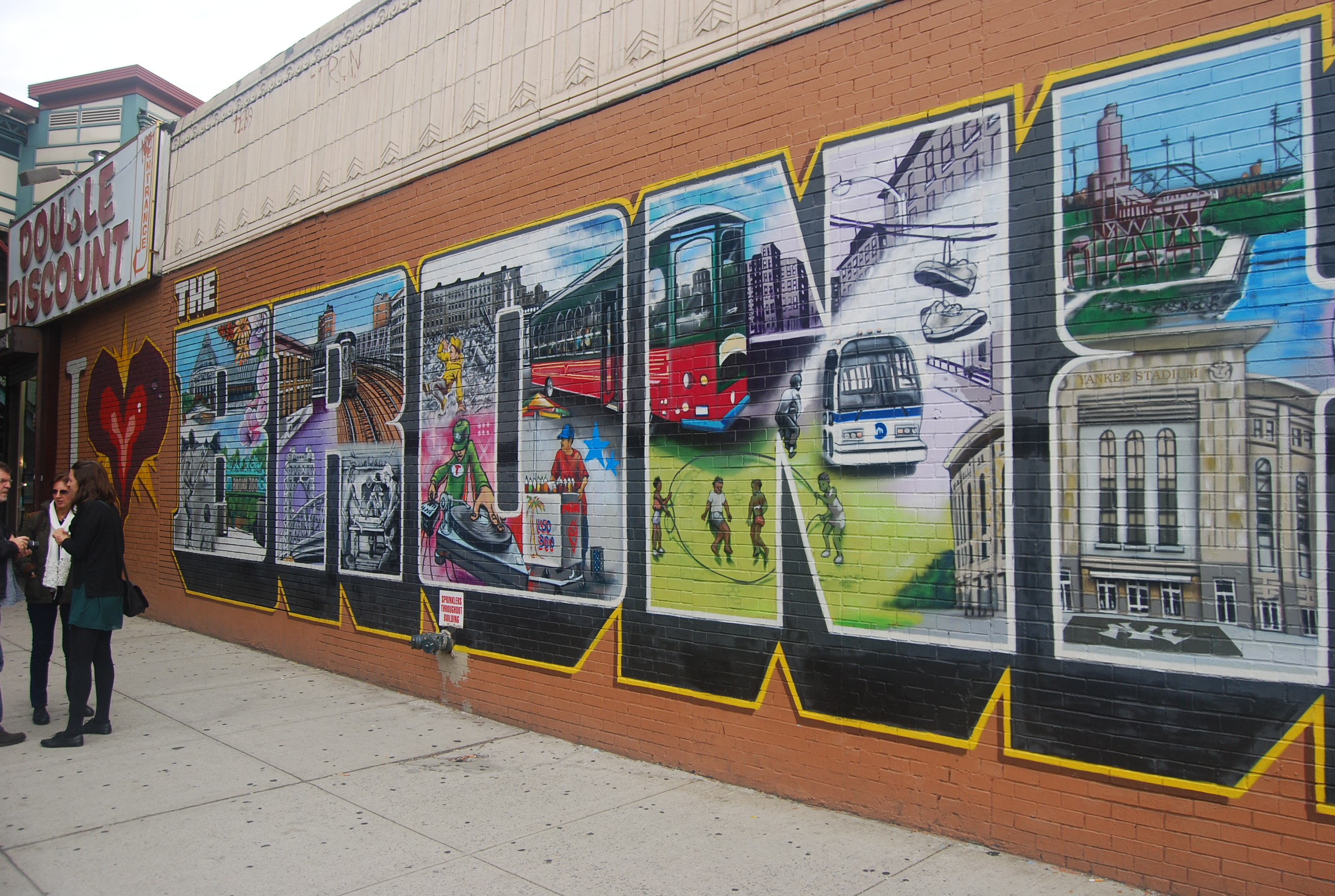 Después nos dirigimos al Bronx pasando por la calle 125th (el corazón de Harlem) y por el puente George Washington. Llegamos al estadio de los Yankees y paramos una media hora para hacer fotos, comprar una pelota de béisbol y tomar algo. Continuamos nuestra ruta por el Bronx pasando por la comisaría de policía «Forth Apache», los Juzgados y la parte sur, que se supone que es la peor zona, aunque nosotros no vimos muchas pandillas ni gente con malas pintas. También pasamos por avenidas comerciales importantes como Gran Concourse y Westchester y nos paramos a hacer fotos en la zona de grafittis o murales (Grafitti de Big Pun). Este barrio ya no es tan peligroso como antes y hay gente que lo hace por libre, pero a nosotros nos iba mejor una excursión por todos los barrios para hacernos una idea de cada uno, ya que no teníamos mucho tiempo.